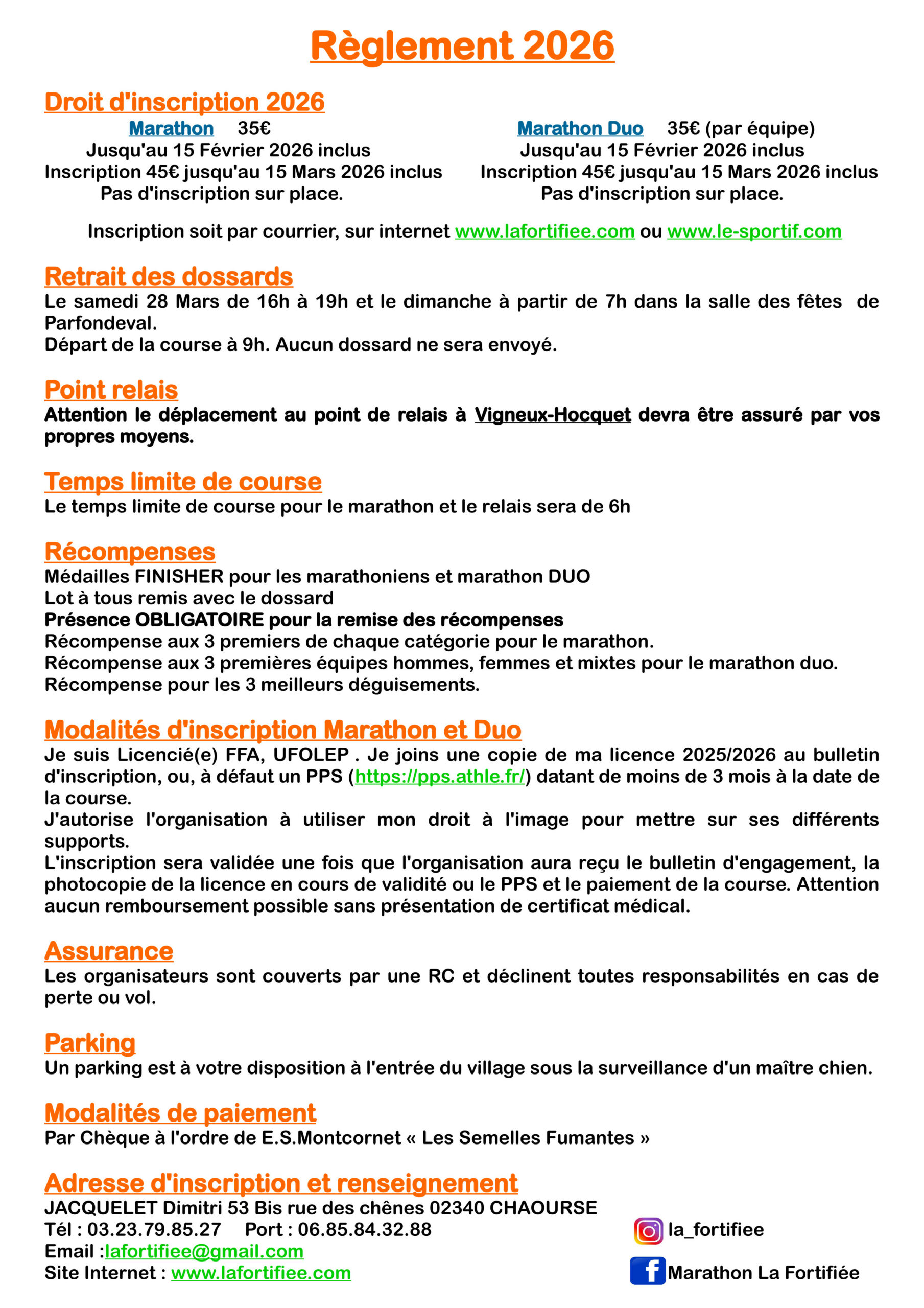 Le marathon / marathon duo La Fortifiée est actuellement l’unique marathon du département de l’Aisne (02).
